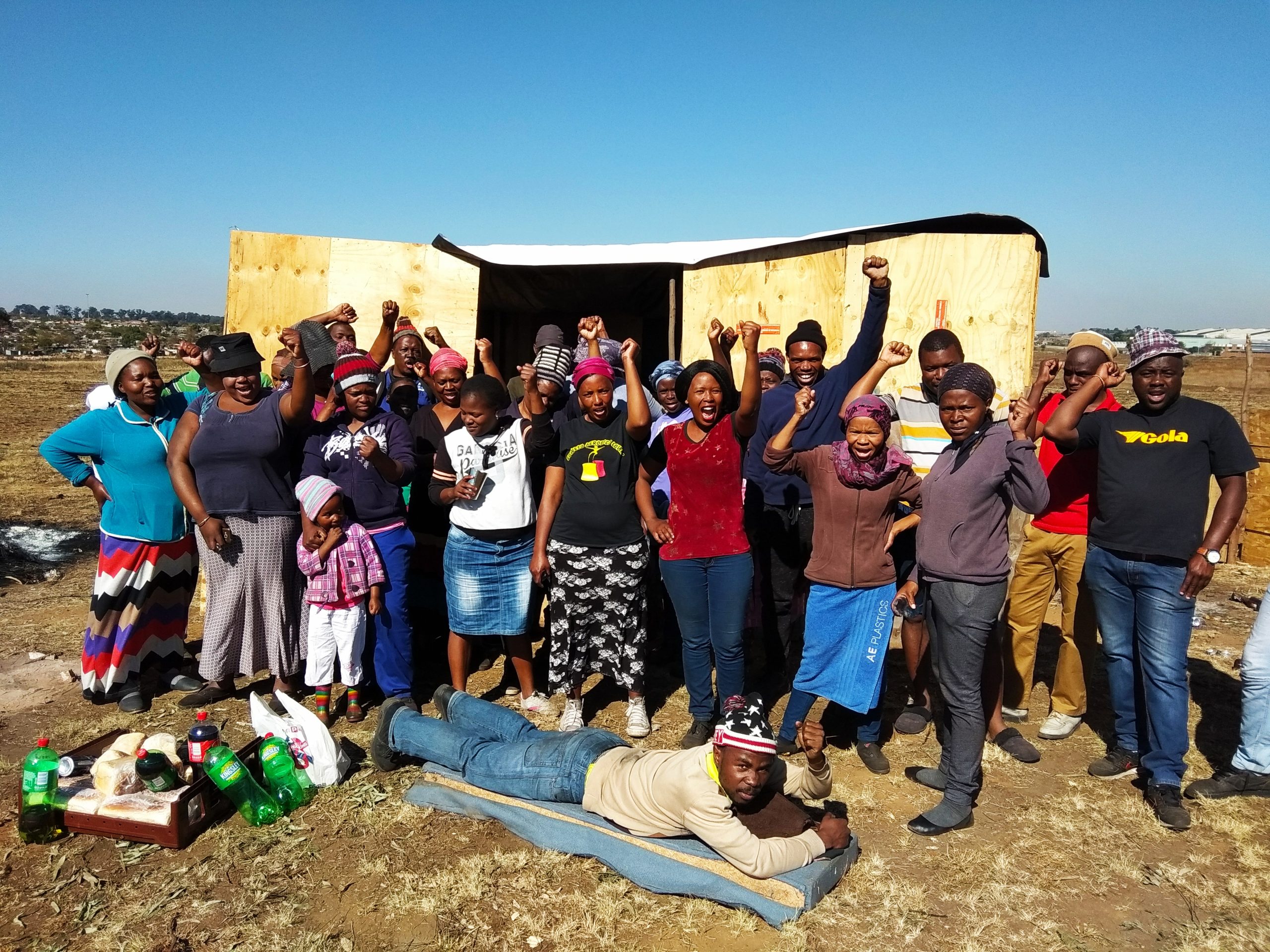 No pro bono law firm has been willing to help us so far. We had to use our own money to get a lawyer for the bail application for Siyambusa. We also used our own money for a lawyer to seek an urgent interdict against the Municipality to stop their illegal evictions. Our application was dismissed on Thursday on the grounds that it was ‘not urgent’. We have also had to use our money to buy and transport building materials after each demolition. If anyone is willing to support the occupation with food or with blankets we would appreciate it.