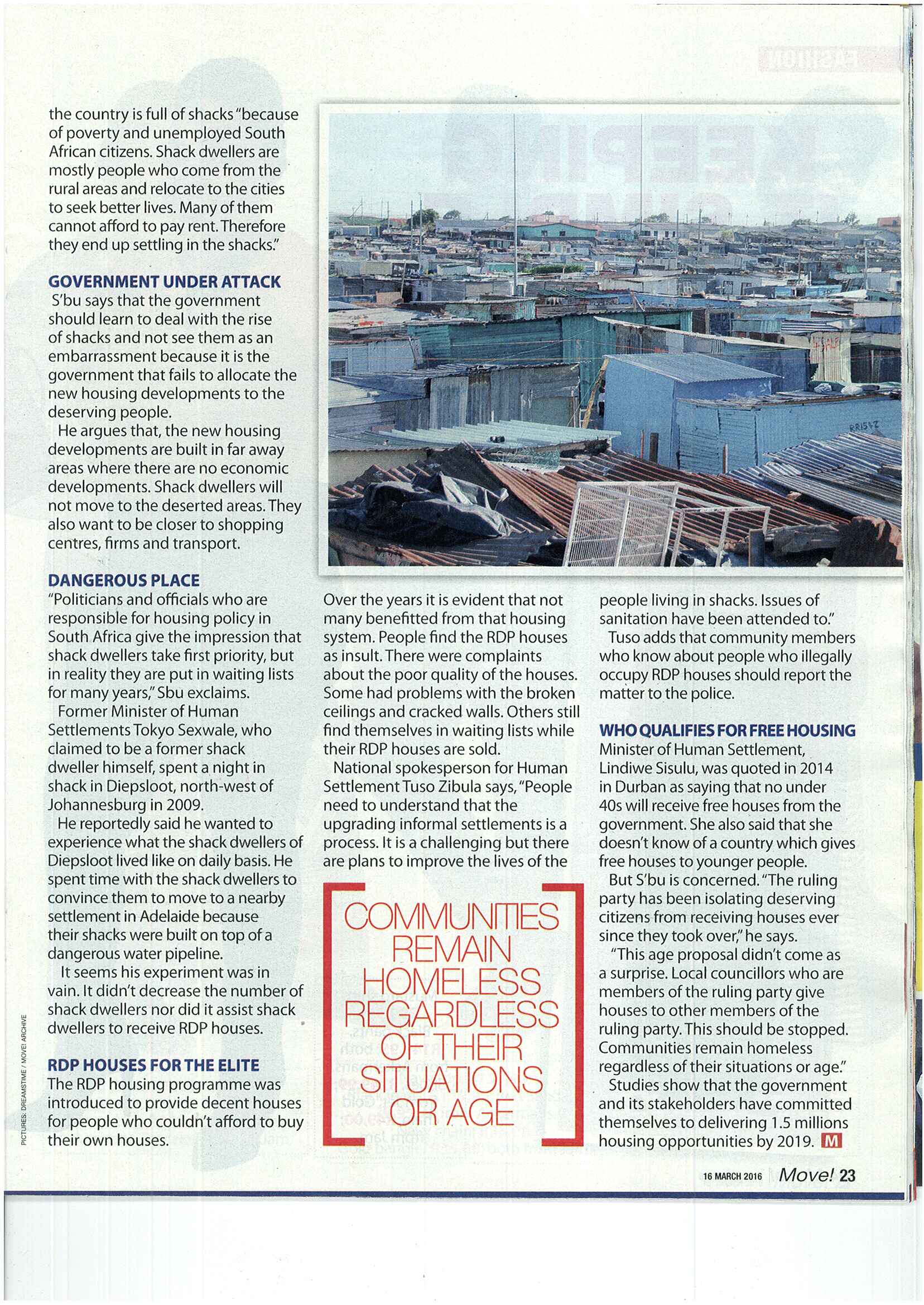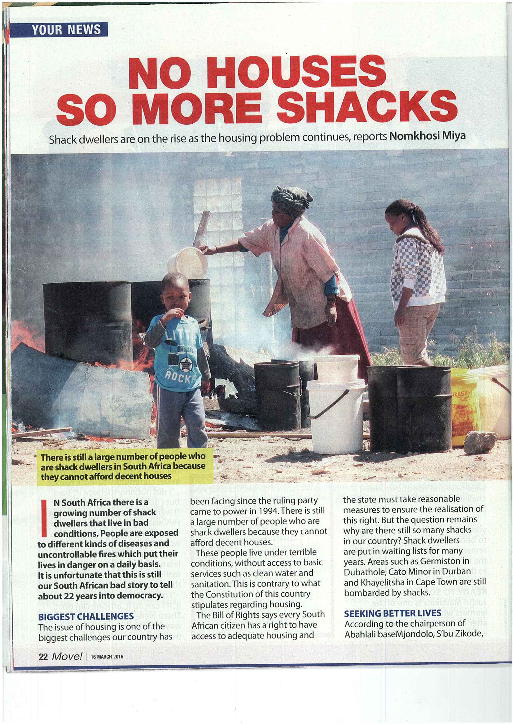 Article on Abahlali baseMjondolo in Move Magazine