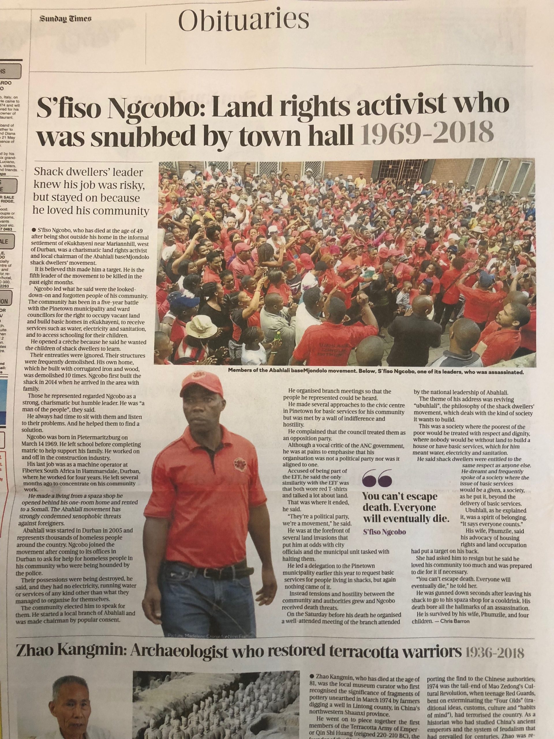 This obituary for S’fiso Ngcobo was published in the Sunday TimesĀ today.